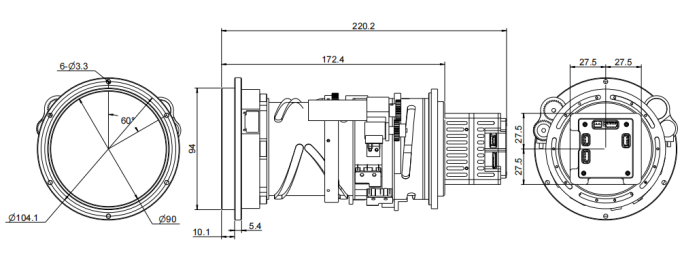 Φ110 (ഫ്ലേഞ്ച്) × 221 മിമി, φ120 (പരമാവധി. മൊത്തത്തിലുള്ള അളവ്) |