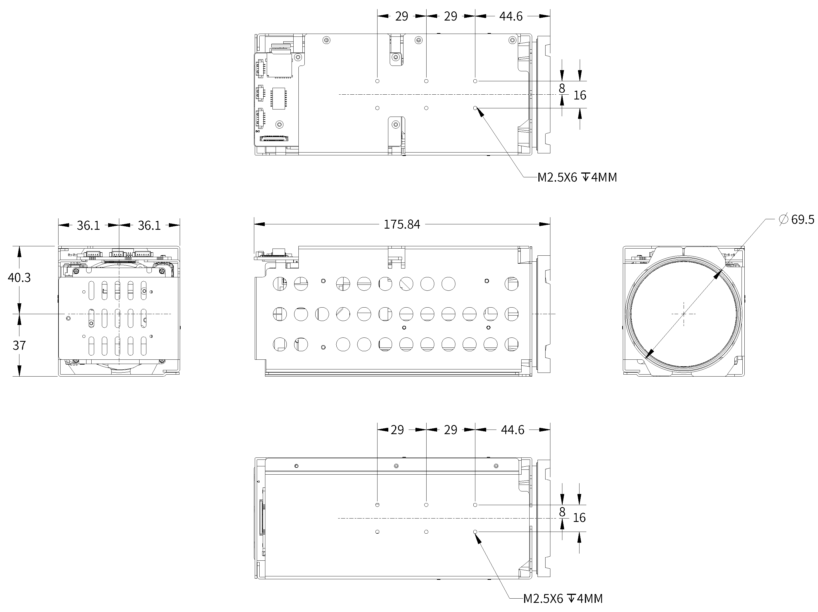 4നി ഇഥർനെറ്റ് പോർട്ട്, 6 പിന്നിൻ പവർ & utart പോർട്ട്, 5 പിൻ ഓഡിയോ പോർട്ട്. 30 പിൻ മിപ്പി |